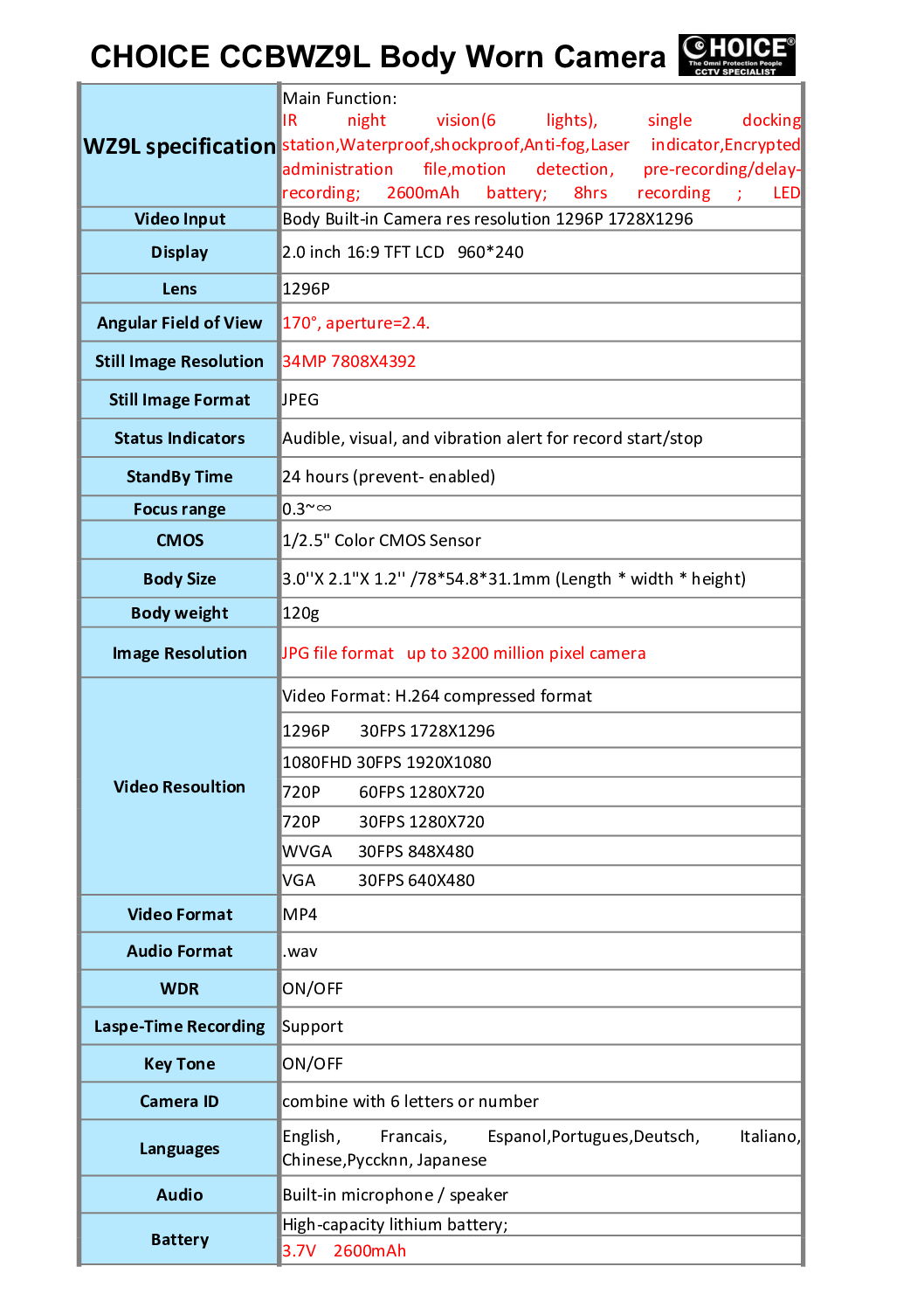 Body Worn Camera CCBWZ2SD Police Body Worn  ||  CCBWV8GPS Specification || CCBW9LSD Specification ||  CCBWA75M Specification ||