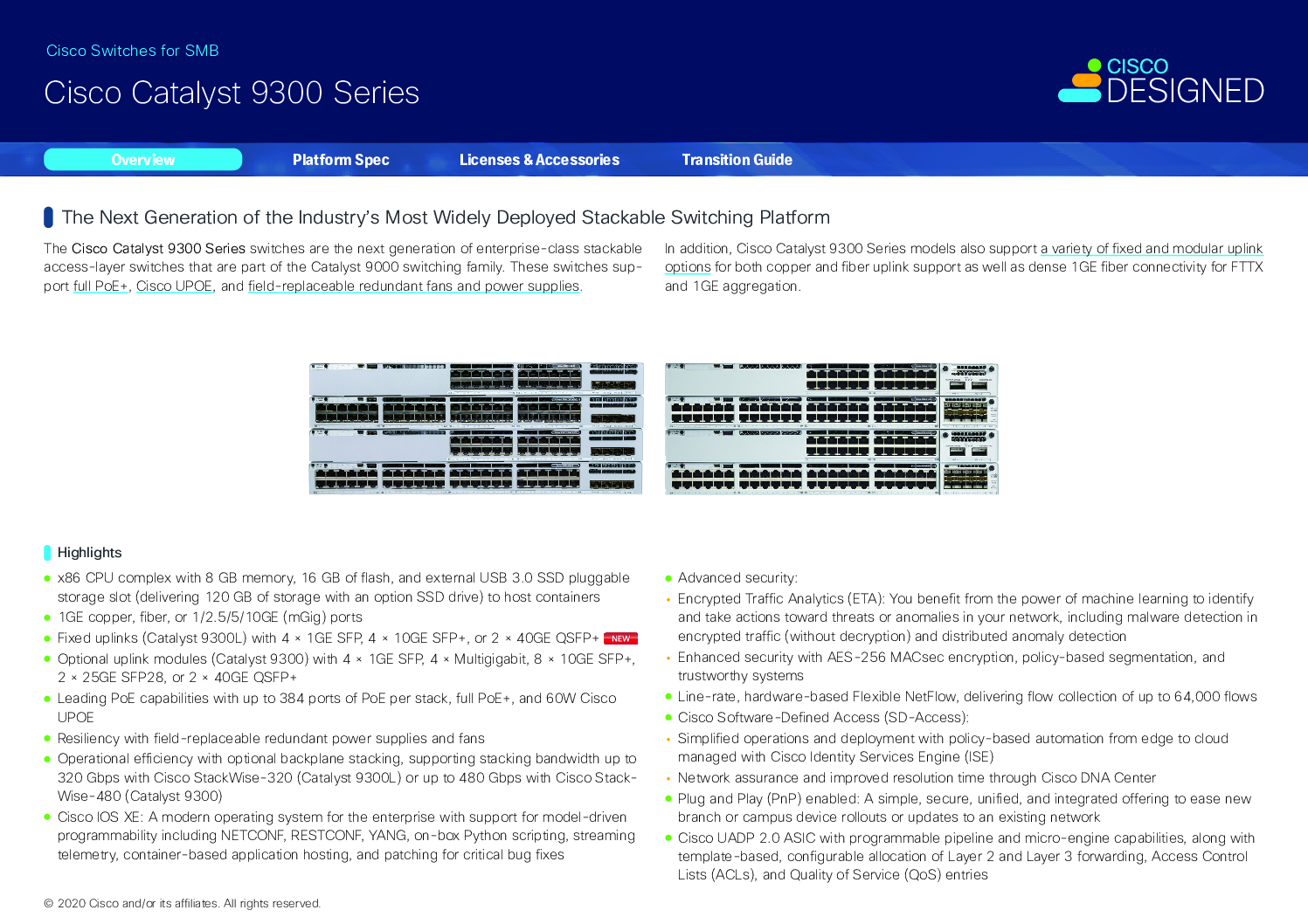 Cisco engineered the C9300X Series with high availability and operational continuity in mind. The switch includes: