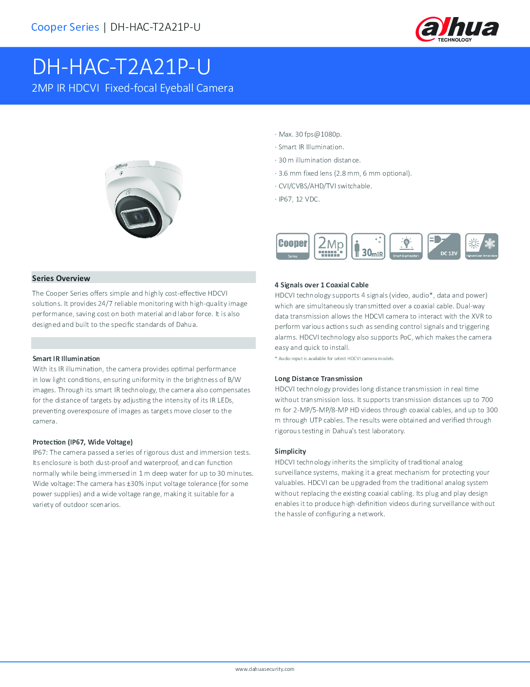 Key Features of DAHUA HAC-T2A21