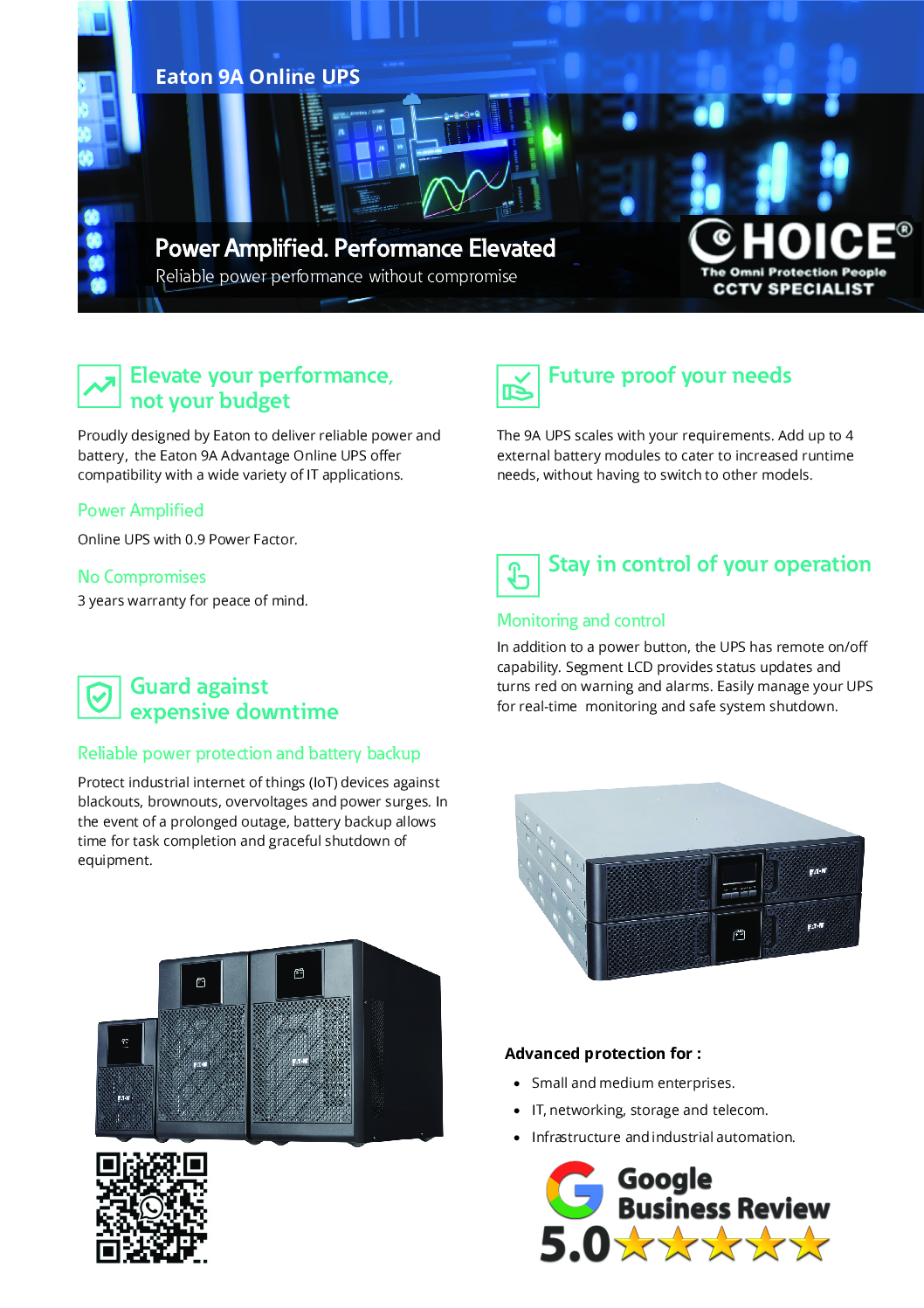 Ideal for data centers, CCTV systems, network racks, and industrial applications across Singapore, the Eaton 9A series provides reliable, enterprise-grade power backup.