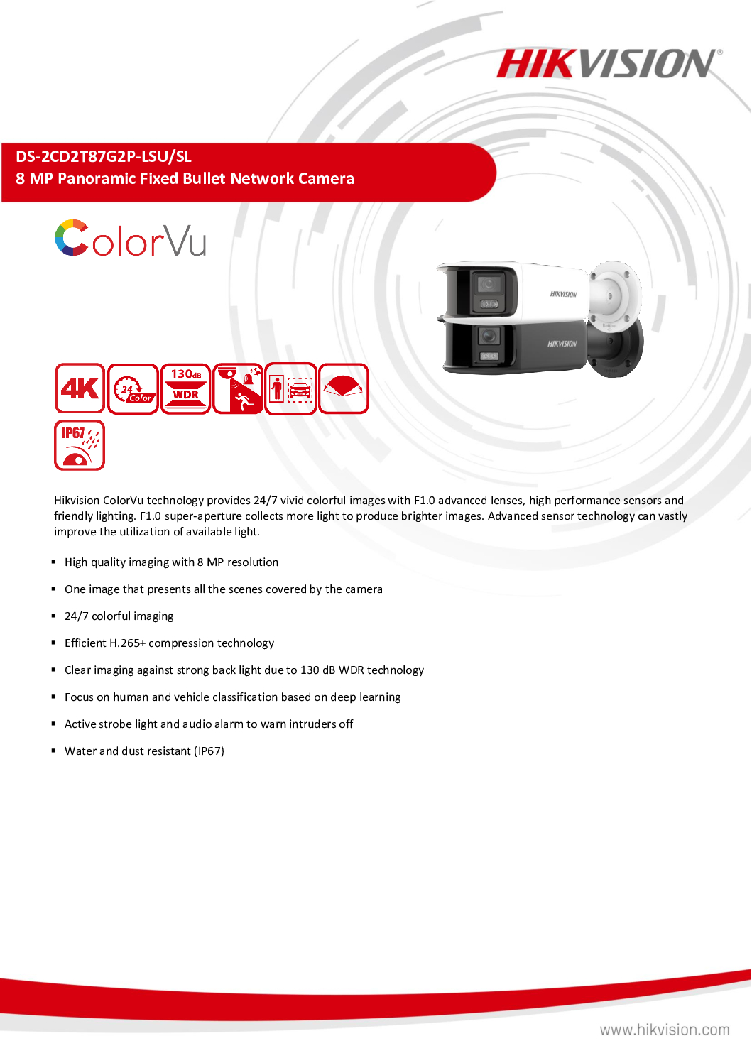 HIKVISION 8MP COLORVU BULLET DS-2CD2T87G2P-LSU-SL