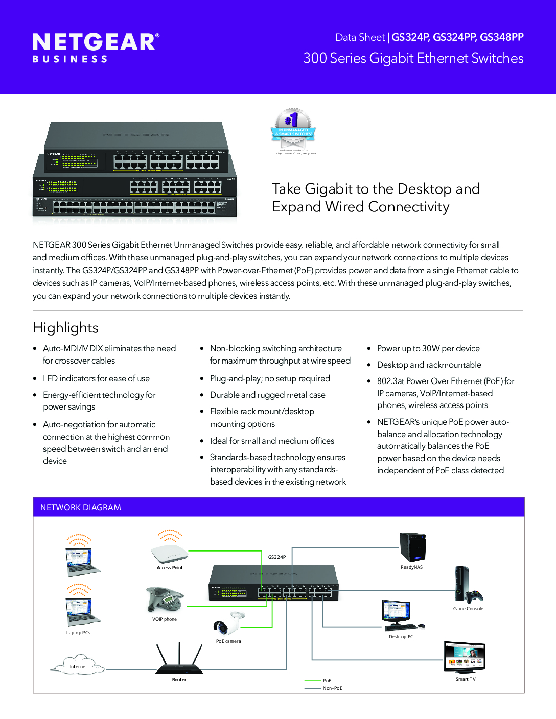 GES-2118P: 16-Port Gigabit + 2 SFP Uplink + POE+ 390W