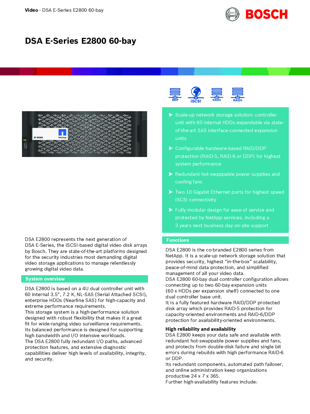 Co-Branded Reliability: Built on NetApp’s world-class E-Series architecture and optimized specifically for Bosch Video Management Systems (BVMS).
