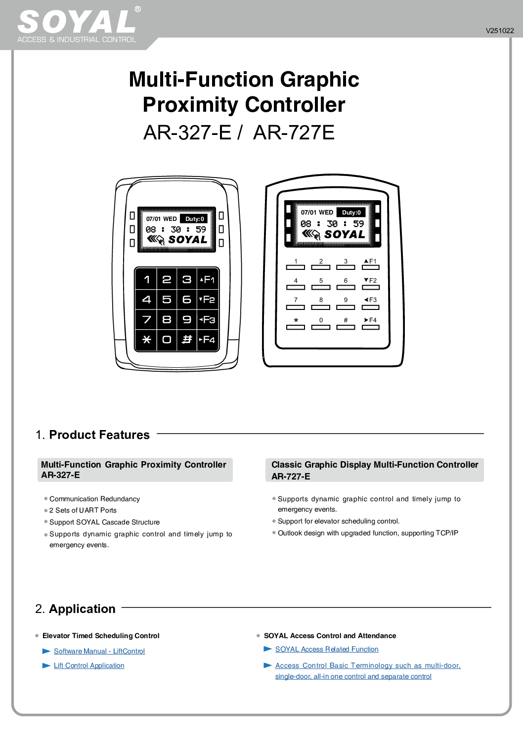 The SOYAL Door Access Control AR-327-E is a comprehensive security system designed to control access to doors in various environments. Here are the features, functions, benefits, and advantages of this system: