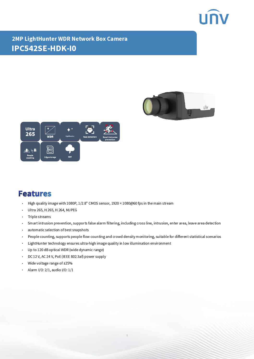 Upgrade your surveillance system with the powerful UNV UNIVIEW IPC542SE-HDK-10, a professional-grade 2MP LightHunter box network camera engineered for high-accuracy people counting, perimeter protection, and ultra-low light performance.
